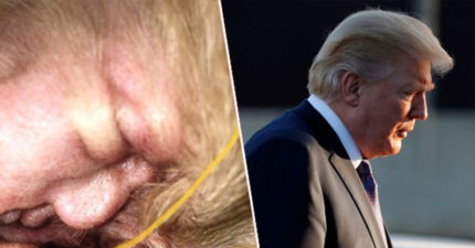 在狗狗的「耳朵裡驚見川普」,網友不太確定是誰比較慘:應該是狗狗吧?