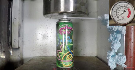 液壓機這次遇上會爆炸的派對道具「噴彩帶」,最後那「噗哧」的感覺真是爽翻拉!