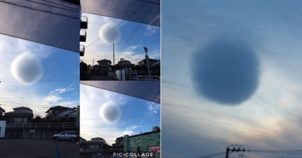 日本網友把這顆「超圓球狀雲朵」照片上傳到網路上,氣象專家大呼:「太幸運啦!」