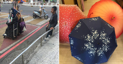 腦麻阿伯出來賣傘但站半天都沒人理,吃力認真介紹「超精緻手工傘」現在想買還得排隊!