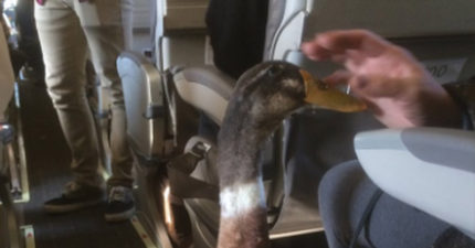 这只鸭子「为了安抚主人的紧张情绪」一起坐上飞机,他逗主人开心让所有乘客都被疗愈了!