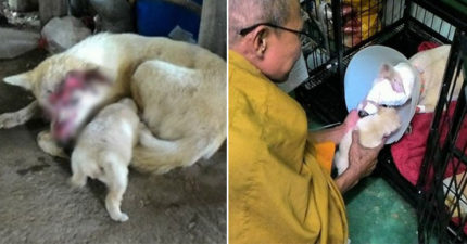 狗媽媽「被車撞爆頭連眼珠都跑出來」仍爬回幼犬旁餵奶,治療後看到自己孩子的反應更讓所有人都紅了眼眶。