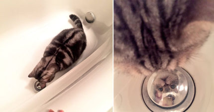 貓咪一直待在浴缸盯著排水孔不肯離開,最後還抬頭一臉「原來我是隻貓」的表情已經笑翻所有網友了!