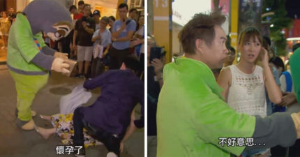 康康喬裝樹懶裝嚇人「害孕婦羊水破」現場超緊張,結果醫護人員一現身他當場淚崩…