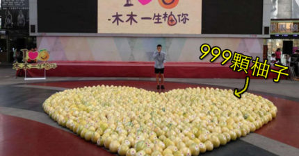 這位男大生出奇招「用999顆柚子擺成愛心告白」,但最後爽翻的是民眾!