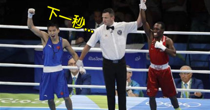 這位大陸拳擊手以為自己獲勝已經開心的舉手歡呼,結果下一秒卻讓他尷尬到想直接人間蒸發掉。