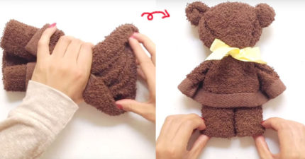 她用一条小毛巾DIY做出超可爱的「毛巾泰迪熊」,零技巧的步骤连幼稚园小朋友也学起来了!