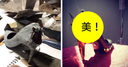女友1萬5千塊的鞋被狗狗咬爛,在他巧手下改造成再多錢也買不到的「超搖滾鋼鐵高跟鞋」。