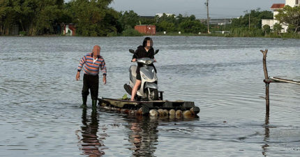 宜蘭淹大水!護理師為救傷患 「人車搭竹筏」趕上班
