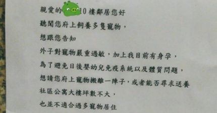 鄰居懷孕貼公告「要求將寵物送養」 「飼主超霸氣回應」網全拍手叫好