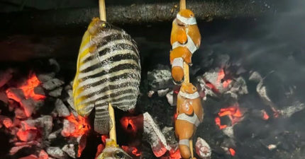 「串烤小丑魚」爆紅!料理手法曝光 網讚:大人小孩都愛吃