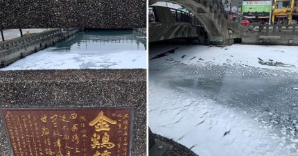 基隆下雪了?田寮河「雪白一片」如結冰 元凶竟是銀行