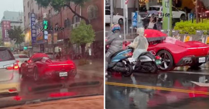 8500萬法拉利現身台中街頭!「撐傘開車」路人看傻 車主曬車內視角回應了