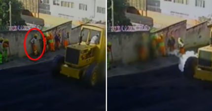 站路邊看鋪路機施工 突爆胎「鋼圈擊斃工人」恐怖畫面曝