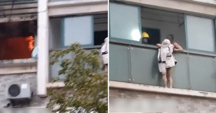 家中大火!老婆掛露台邊…他「火燒全身」仍護妻不放