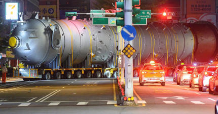 「巨型柱狀物」突現桃園街頭 民眾看傻:運飛彈?