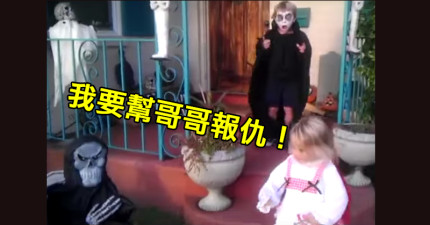 這個小妹妹為了保護哥哥被萬聖節骷髏嚇得歪七扭八,竟然用萌到爆炸的方式幫哥哥報仇!