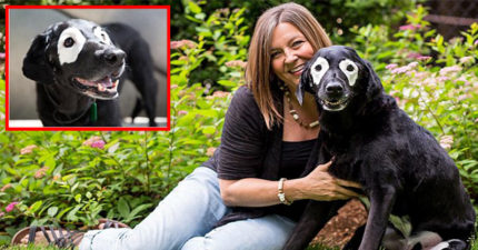 這隻黑拉布拉多出門自帶「白眼圈」大家都以為是主人亂畫,但很多小孩看到他的神奇模樣內心都發生了奇蹟變化!