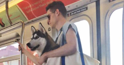 地鐵不讓狗狗上去6名主人就霸氣揹大隻毛小孩「萌度破表」,但最後一張狗狗「老子恨地鐵表情」讓網友都笑翻了!