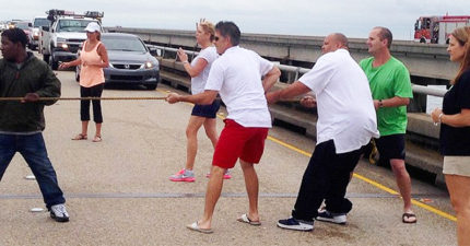 他們在馬路中間「大玩拔河」後面的駕駛都下車罵人,但看到另一端的「對手」就全鼓掌大喊「這樣做就對了」!