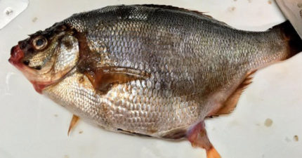 她把魚買回家後才發現魚肚「特別鼓」,大力壓一下「賺到了」!
