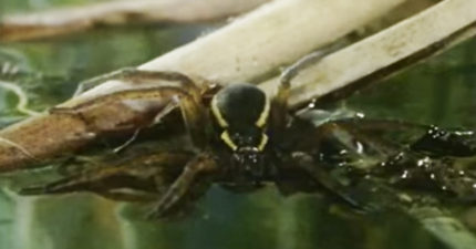 这只老鼠般大小的蜘蛛靠近池塘时我还以为他想喝水,结果1:00发生的事已经扯到让我又重播一次了!