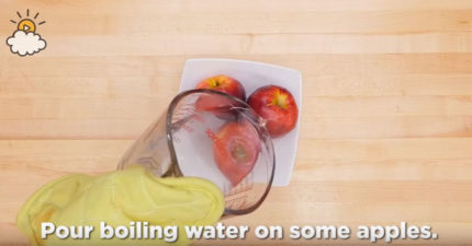 他把滾燙的熱水倒到蘋果上,結果就看到了你一直沒有看到的隱藏驚悚畫面!