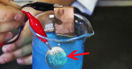 這個男生將硬幣跟銅片放進水中,沒想到幾分鐘之後就發生了「比電影還完美的變臉情節」!