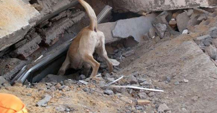 搜救人員原本不明白為什麼狗狗要一直把食物叼進瓦礫堆裡,結果挖開瓦礫之後才發現背後的「爆感人真相」!