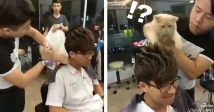 設計師在幫客人做造型時「突然拿出一隻貓咪」,結果才發現這樣才能做出最完美造型啊!