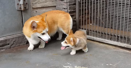 影/大柯基教小柯基「如何坐下」 但小柯基一直學不會只好使出絕招