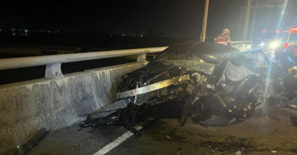 台南死亡車禍!賓士男自撞橋墩「車輛變廢鐵」 他噴飛慘死