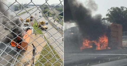 國道嚴重車禍!砂石車翻覆「全面燃燒」 傷亡情況曝