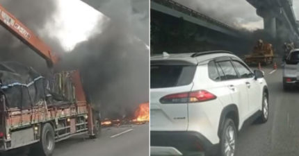 國道一號驚傳嚴重車禍!「大貨車追撞3車」現場慘變火海