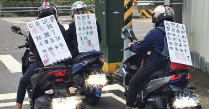 騎車環島!前面騎士背後掛告示牌「後面有2個人一直跟著我」 轉頭一看「最右邊騎士板子」直接笑噴