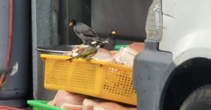 台中知名控肉飯「肉放路邊曝曬」 八哥狂啄食