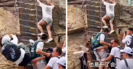 女遊客爬華山雲梯踩空「迅速墜落秒消失」 恐怖影片曝光