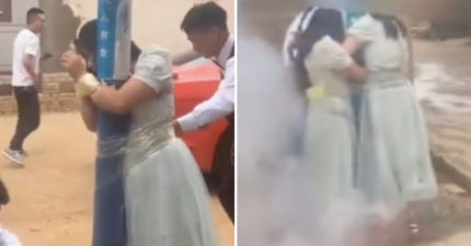 婚鬧遭綁電線桿 「腳邊狂炸鞭炮」禮服燒碎片!伴娘嚇到狂飆髒話