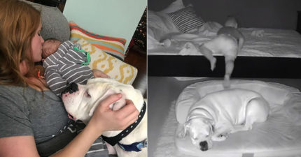 影/寶寶「睡到一半」驚醒 「拖著被被」爬到床下跟大狗睡!