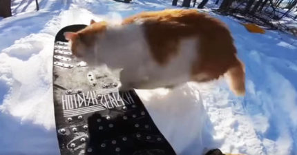 會滑雪的貓「技巧熟練到」家狗都來拜師「拜偷教偶」