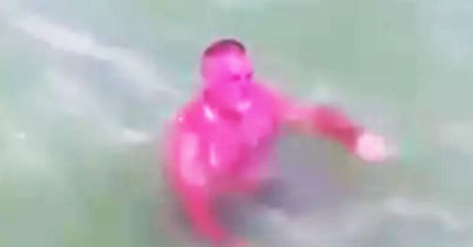 節目意外拍到「紫色龍蝦人」在游泳 網譏:上岸就知道有多痛