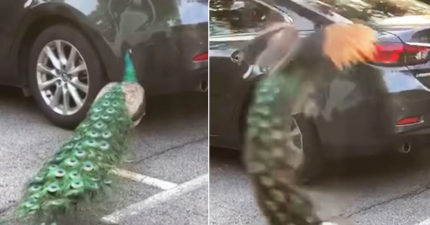 影/我才是最漂亮!孔雀看汽車倒影「跟自己打架」 近看車身太慘了