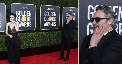 金球影帝瓦昆「陰鬱嚴肅」走紅毯 看到老婆秒露「粉紅癡漢笑」超級反差萌!