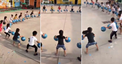 影/中國幼兒園「同步運球」太驚人 網兩派吵:這就是政府要的!