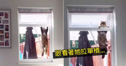 影/萌胖貓「硬要闖空門」全被拍 30秒「狂拉單槓」臂力太驚人