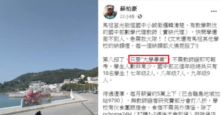 馬祖「急徵教師」薪資5萬附食宿 曝「最大好處」:存錢很快!