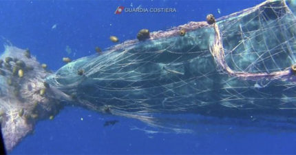 發現「受困抹香鯨」漁網大打結 潛水員「拿刀狂割網」3天才救出牠