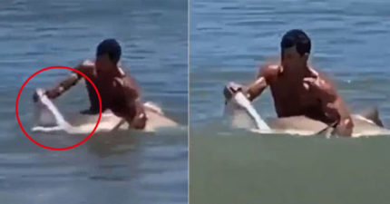 民眾目擊神秘男「肉搏鯊魚」 徒手「扳開嘴巴」全海灘傻眼!