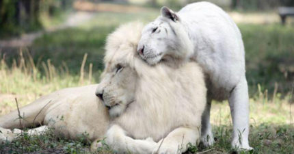 這對「白獅跟白虎情侶」的合照已經夠夢幻,但他們生下的珍貴「小白獅虎」絕對是你從未看過的超萌神獸!