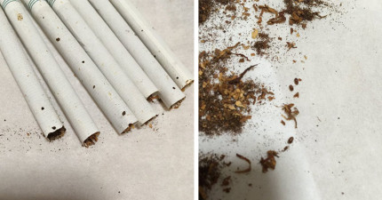 他以為放了2年的香菸有密封就沒問題,沒想到打開後發現「一顆一顆的小活物」把他嚇到完全不敢碰!